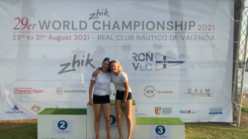 We are Sophie Studer (16) and Sterre Wiersma (17) and two years ago our journey on the 29er sailing boat started. As we are both from Basel, we soon faced our first challenge: where to train, when there are no lakes or seas close by? The decision was Oberhofen. A small village on Lake Thun, which has been our home base ever since. However, we have come a long way. Not only have we become very close friends, we have also formed into a dynamic team which is one of the essential basics in order to perform well as a sailing team. There have been ups and downs but looking back, every bad race has just made our team bond stronger and our sailing skills better. Training and racing in Switzerland is great, however the wind is not always as great. That is why we heavily rely on international trainings and events in order to reach the top of the world.