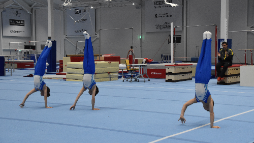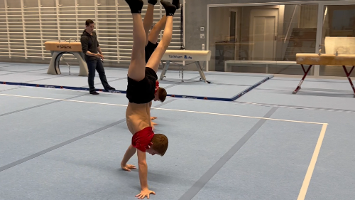 Ältere Turner (ab AK 9) haben die Aufgabe, innerhalb von 2 Minuten im Handstand so weit wie möglich zu laufen.