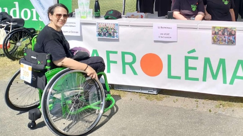 Je m’appelle Veronica, j’ai 47 ans et je suis en fauteuil roulant depuis mes 14 ans, suite à un accident de la circulation. Depuis quelques années, je pratique le Rafroball, un sport de balle inclusif né en Valais, qui m’apporte bien-être physique et joie de vivre.